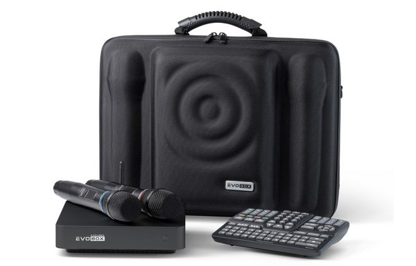 El sistema de karaoke doméstico EVOBOX Plus Black se suministra en un estuche de marca llamado EvoCase. Este estuche conveniente se utiliza para transportar y almacenar el karaoke. En él, se pueden acomodar de manera segura y compacta todos los componentes de EVOBOX Plus Black: el sistema de karaoke, los micrófonos, el control remoto, los cables y otros accesorios.