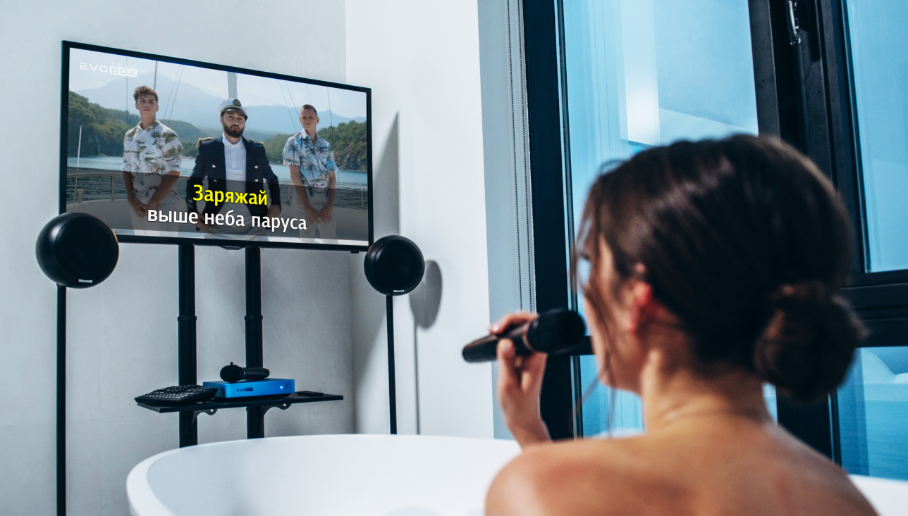Controlar EVOBOX es fácil y conveniente. El control remoto Bluetooth con teclado completo y teclas funcionales te ayudará a comprender instantáneamente todas las configuraciones del sistema de karaoke. Para los amantes de los dispositivos, se han desarrollado aplicaciones especiales como EvoControl y EvoNet para controlar EVOBOX desde una tableta o teléfono inteligente.