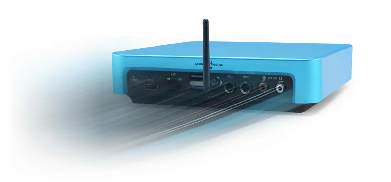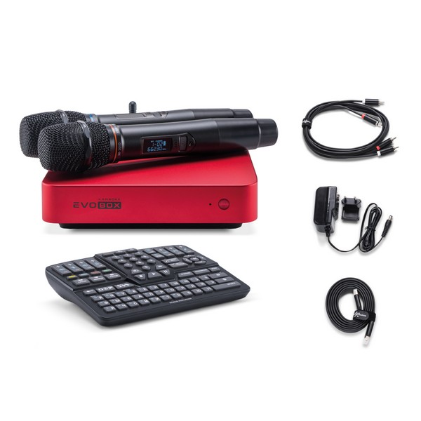 El sistema EVOBOX Plus Black, a pesar de su tamaño compacto, ofrece todas las características de los sistemas de karaoke profesionales: procesamiento de voz profesional, conexión directa de dos micrófonos, búsqueda inteligente de canciones, una amplia variedad de efectos vocales, evaluación automática del canto y mucho más.
