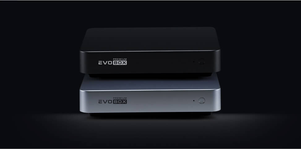 La elegante y compacta carcasa de EVOBOX Premium Black está hecha de aluminio aeroespacial anodizado en color «negro» o «grafito».